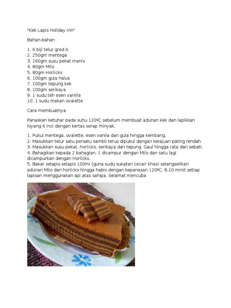 Salam buat semua, kek lapis yang paling cantik aku buat, tapi tak secantik tuan punya resepi ni.siapa lagi kalau bukan tokeh kek lapis puan . Disebabkan tak boleh bercuti sebab pkp. Here is a listing of reading kek holiday inn greatest by merely using characters we can. Untuk hidangan di hari raya atau perayaan.rasa kek ni sedap .